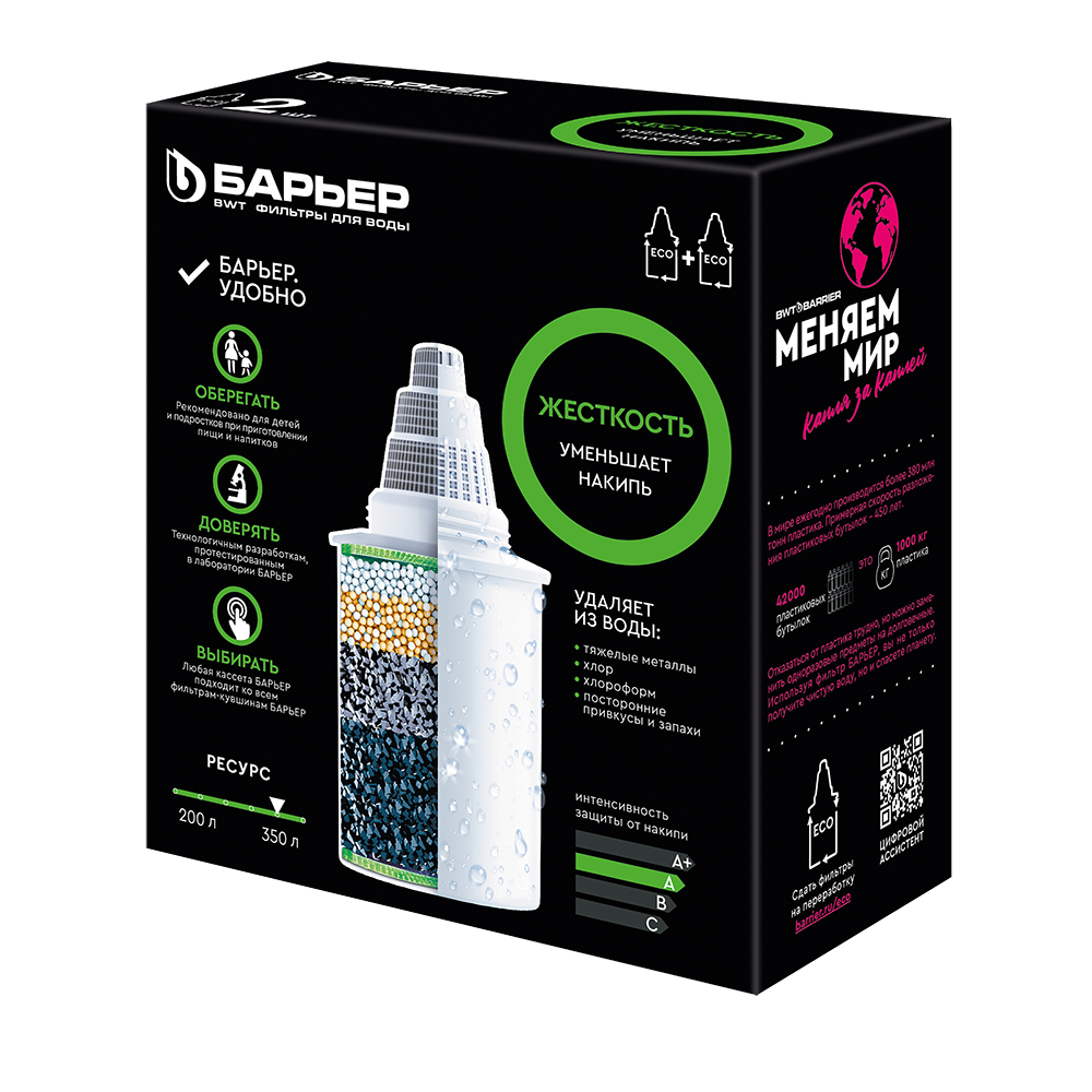 Одна кассета БАРЬЕР способна заменить несколько сотен пластиковых бутылок. По окончании ресурса кассеты можно сдать на переработку в пунктах приема