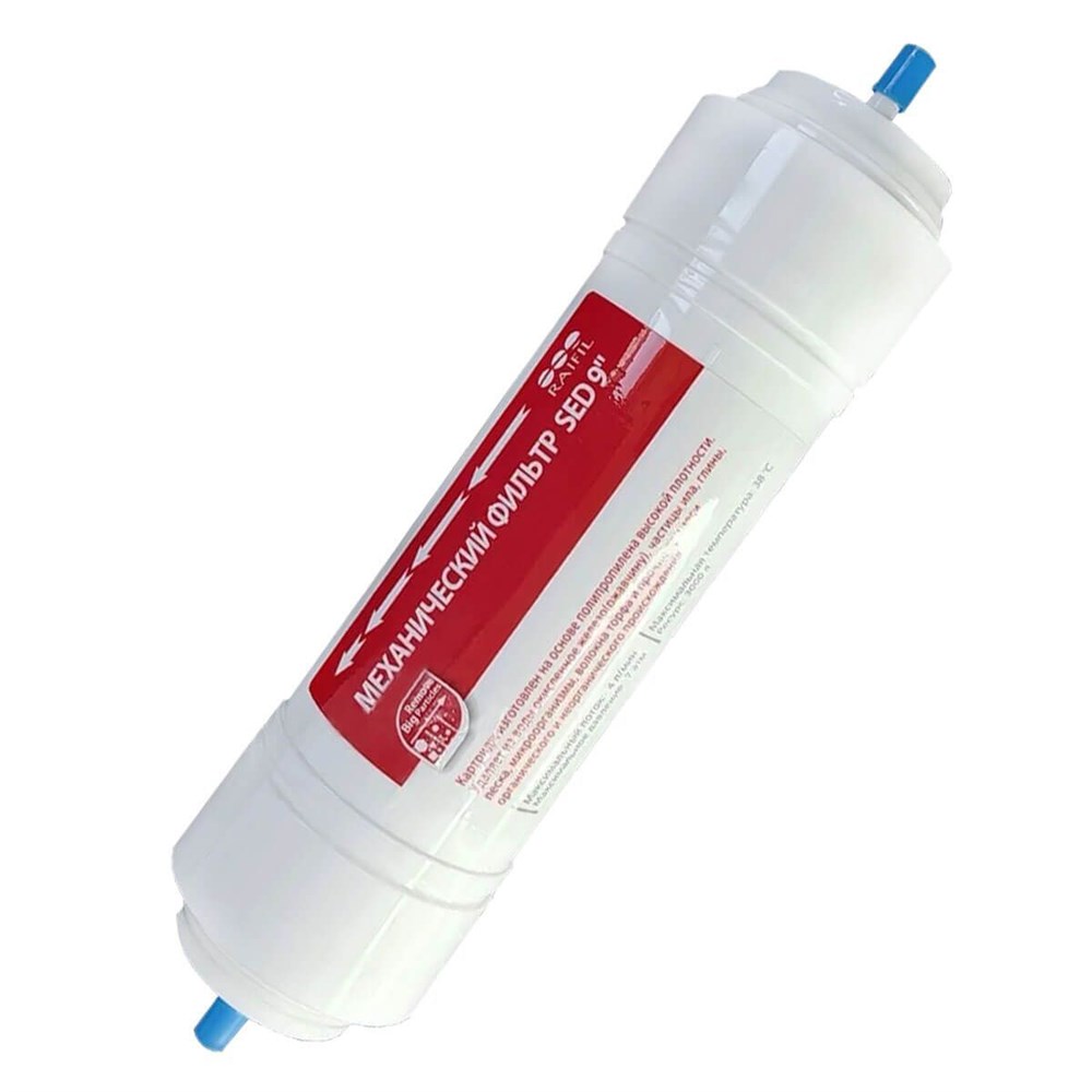 Сменный картридж Raifil 9" SED осуществляет механическую фильтрацию воды в системах фильтрации и обратного осмоса Raifil. Используется, как правило, в качестве первой ступени очистки воды. Позволяет собрать микрочастицы, которые не могут раствориться в воде – это пылинки, ржавчина, отслоившаяся от труб, песчинки, частички глины и другие загрязнители. Может быть использован, как в домашних условиях, так и в коммерческих хозяйствах. Изготавливается картридж в специальном корпусе, который подходит к соответствующим фильтрам Raifil.