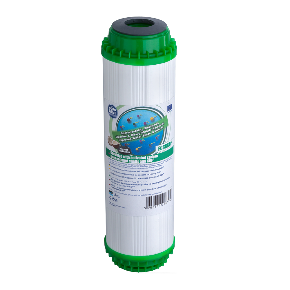 Использование в картридже Aquafilter FCCBKDF засыпки KDF, предотвращает развитие бактерий и вирусов. KDF снижает концентрацию тяжёлых металлов в воде (свинец, ртуть, кадмий) и железа, удаляет сероводород и пестициды.