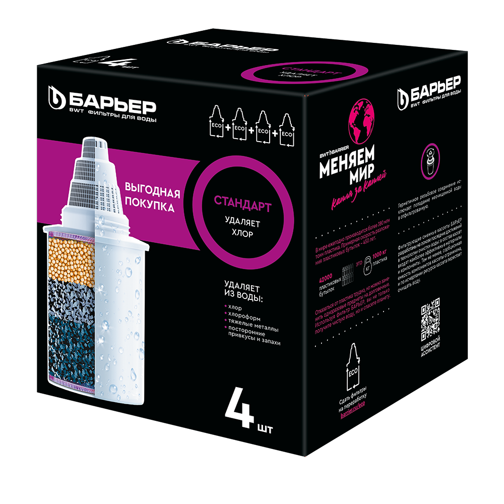 Одна кассета БАРЬЕР способна заменить несколько сотен пластиковых бутылок. По окончании ресурса кассеты можно сдать на переработку в пунктах приема