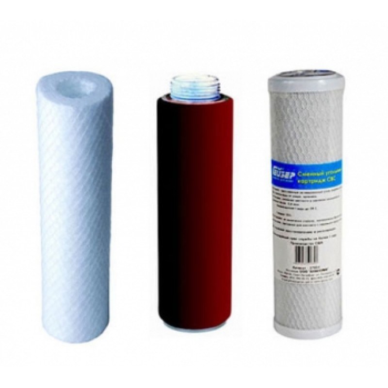 Комплект сменных картриджей №1 для системы Гейзер 3 ИВЖ для жесткой воды и для других систем использующих стандарт 10-ти дюймового корпуса.