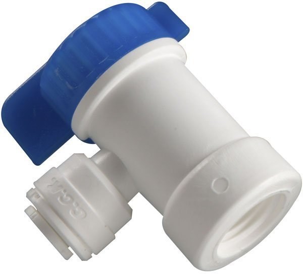 Пластиковый шаровой кран подходит на все накопительные баки систем любых производителей. Имеет два выхода для быстросъемного подсоединения на 1/4'' и внутренняя резьба 1/4".