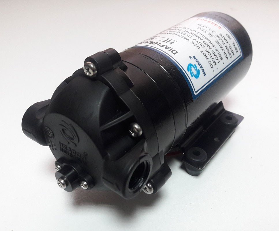 Насос жидкостной Аквафор HF-9600N с блоком питания используется в системах обратного осмоса высокой производительности с мембранами до 600 GPD (галлон в сутки), таких как Аквафор ОСМО. На крышке предусмотрен регулировочный винт, с помощью которого можно выставить необходимое выходное давление.